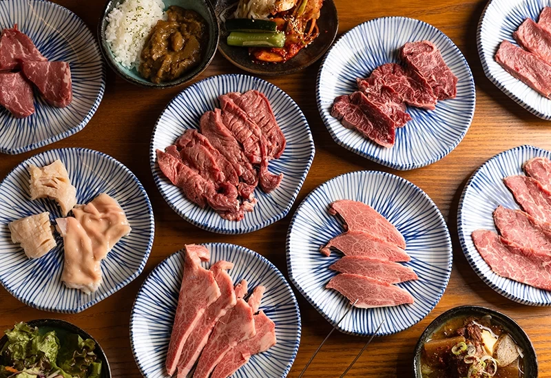 從秋葉原搭乘電車僅兩站即可抵達水道橋站,步行約五分鐘,在神田靜謐的街巷中,隱身著一家充滿成熟氛圍的高質感燒肉名店。店內嚴選 A5 等級和牛,以精準刀工切製,搭配自家特製醬汁呈現極致風味,連老饕都讚不絕口。泡菜與沙拉醬等配料也堅持手工製作,完美襯托出燒肉的香氣與層次。店內裝潢低調典雅,無論是約會、聚餐,或是想一人靜靜品味燒肉,都能在此度過悠閒時光。