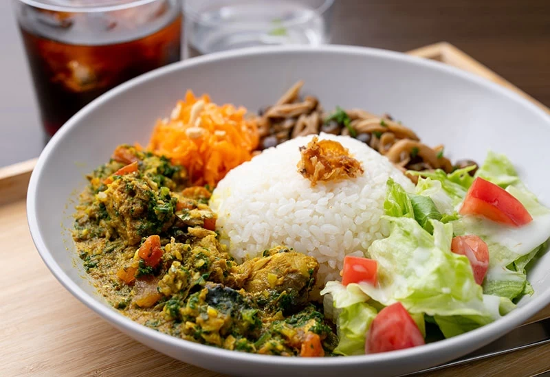 位於秋葉原附近市中心的這家咖啡廳,瀰漫著一種跨越國界的多國籍空間氛圍。在這裡,可以享用到各種健康取向的美食,包括融入阿育吠陀理念的體質改善料理,以及香料風味濃郁的甜點等。除了由咖啡師精心手沖的精品咖啡外,也有多款花草茶與精釀啤酒可供選擇。寬敞明亮的空間設有附投影設備的二樓座位,可作為遠距辦公或包場活動的理想場所。營業時為每日從早上 7 點至晚上 11 點。