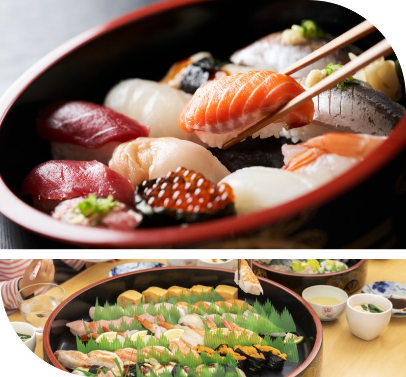 說到壽司,有能在吧台座位享受奢華大人時光的高級壽司店,也有全家大小歡樂同樂的迴轉壽司,各種形式應有盡有。握壽司、卷壽司、炙燒壽司、蒸壽司、醋漬壽司等,運用當地旬味海鮮製作的壽司,其吃法多樣,也是其魅力之一。何不踏上一趟壽司之旅,親自品味全國各地的壽司風味?