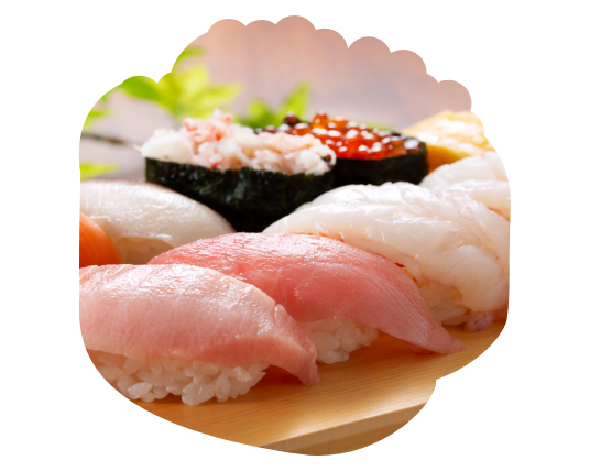 壽司的代表性食材有大腹、中腹鮪魚,還有油脂豐富的鮭魚也深受喜愛。其他像是比目魚、鯛魚、赤貝、北寄貝、鮭魚卵、海膽等,每樣都讓人垂涎。據說即使是同樣的食材,不同板前師傅的處理方式也會帶來不同風味,因此尋覓自己喜愛的味道而巡訪壽司店也是一種樂趣。