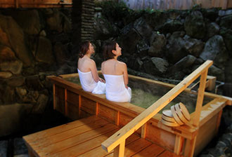在私人空間中悠閒享受源泉掛流泉水的貸切露天浴池「誠之檜湯」。備有由廣島縣出身的知名藝人們親自砍伐的湯來町產檜木製成的浴池,檜木香氣撫慰身心。
