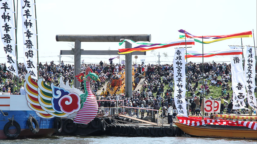 每年4月15日舉行的神幸祭,是約800年前開始流傳的祭典。香取神宮的祭神經津主大神平定東國的情景被模仿再現,氏子穿著如平安時代般的服裝,排成行列繞行神宮周圍。穿著甲冑武士服裝及持盾牌和矛的人、抬御神輿的人等,約200人一起行走的景象十分壯觀。途中在表參道入口舉行祭典,之後返回社殿。祭典前還有被指定為千葉縣重要無形文化財產的香取神道流奉納演舞,以及オランダ樂隊的演奏表演。此外,每12年一次的馬年舉行的式年神幸祭,於4月15日與16日兩日盛大舉行,約3,000名氏子穿著甲冑及其他歷史服裝,組成約4公里長的大行列巡遊。更加上色彩豐富的御座舟繞行利根川,在陸上與水上展開一幅宏大的畫卷。