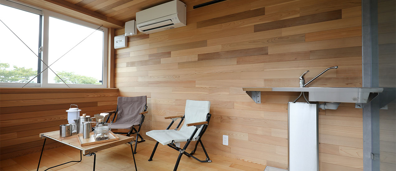 網站上有約3坪大小的木製小木屋,配備了空調、廁所和淋浴設施,每棟都擁有精緻的裝潢,讓人能夠盡情享受非日常感。即使在露營時遇到突然的雨天,也能應對,讓您和孩子一年四季都能享受樂趣。適合家庭和情侶,可以輕鬆自在地度過時光,非常推薦。