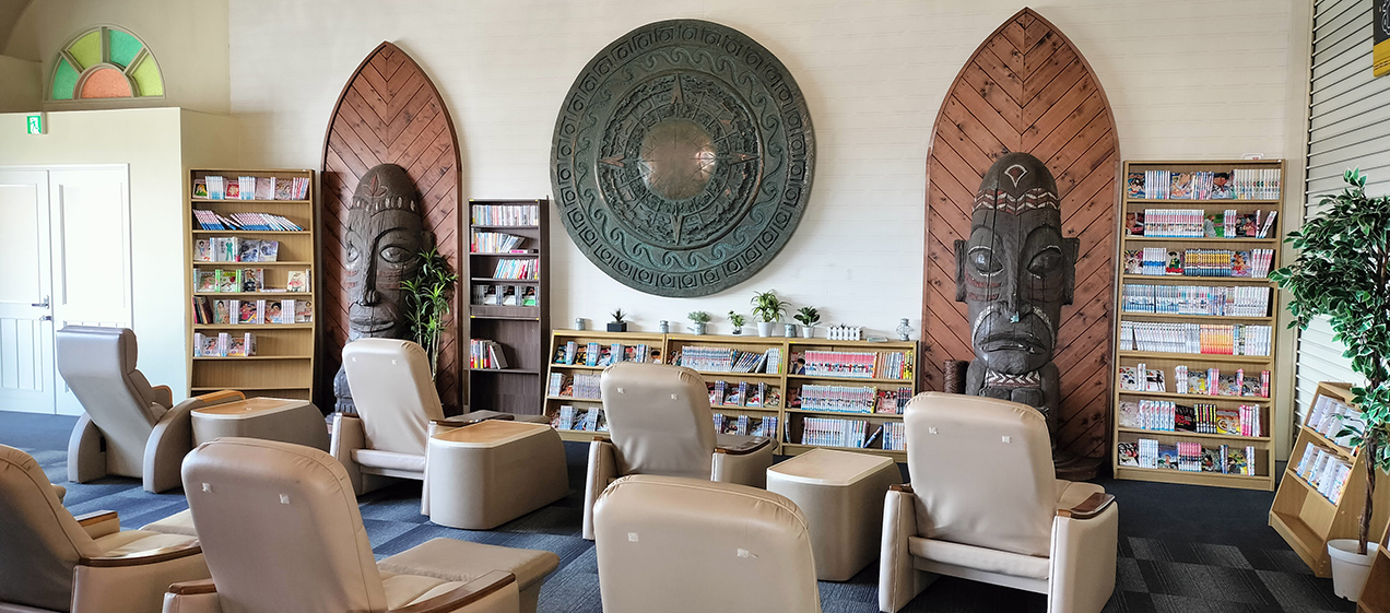 館內設施完善,包含去角質、足部護理、整體療法等身體護理設施,溫泉入浴費+300日圓可使用訓練器材的運動俱樂部,還有理髮店和出租空間。除了溫泉外,也能悠閒休息,因此成為人們放鬆的場所,十分熱鬧。