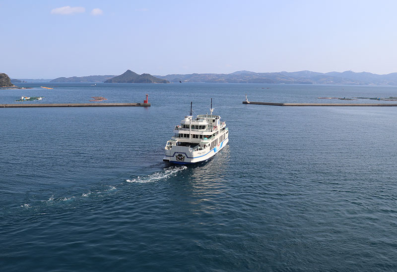 每天9班來回,連接熊本縣天草市牛深港與鹿兒島縣長島町藏之元港的「三和渡輪」。由大小120多個島嶼組成的天草諸島旅遊,推薦搭乘穿越有海豚游弋的美麗海域的船旅。不僅運送人員,也運送汽車與自行車。作為渡輪發著站的藏之元港,設有前往JR出水站的接駁巴士;從牛深港出發,租車店近而方便。