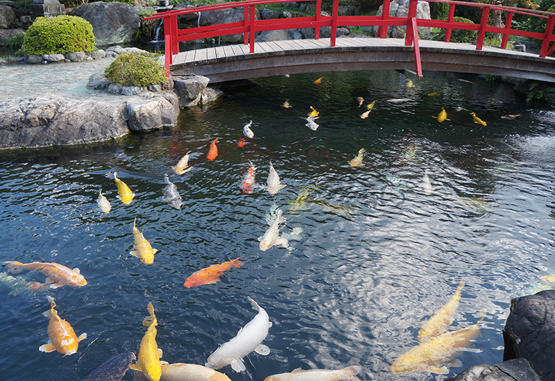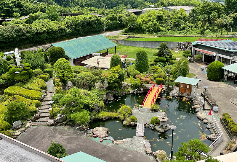 被稱為“游泳的寶石”的錦鯉優雅游動的姿態映入眼簾,四季綻放著季節花卉,營造非日常空間的日本庭園,因為備有鯉魚飼料,帶小孩的家庭也能愉快享受的場所。此外,繼續往裡走,還能被三隻可愛的小山羊療癒。