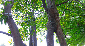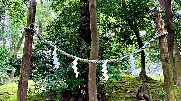 被朱紅色籬笆圍繞著的非常具有靈氣的靈木·連理真榊。在三棵生長的真榊中,有兩棵從中途合併為一棵,並且江戶時代的文獻中也記載了這是賀茂大神靈威的顯現。因為在良緣、必要的緣分以及各種事物的“結合”上有神恩,因此請務必前來參拜。祈求姻緣、受孕、安產、夫妻和睦等,各地人們紛紛前來參拜。