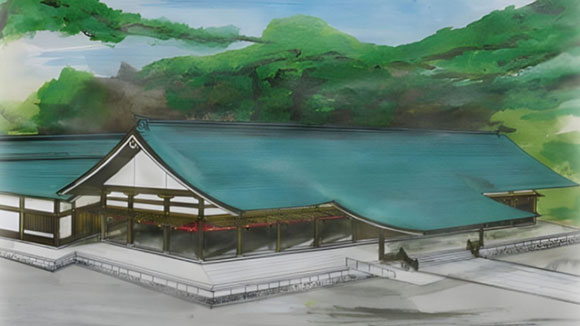 • 聖武天皇的勅命下,陰陽道的祖先・吉備眞備盡力發揮陰陽道,將社殿建造朝向西南(背鬼門),以阻止國家的災難流動。