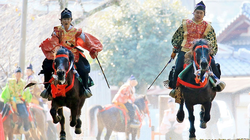 在賀茂神社創建之前,這片土地上曾有由天智天皇建立的日本首座國營牧場,進行馬匹的調教與繁殖。隨著奈良時代的來臨,賀茂神社創建於此地,被稱為「馬的聖地」,從此便為馬匹獻上祈禱。到了平安時代,後白河上皇下令,宮中儀式中的賽馬活動也開始在本社舉行。馬匹是伴我們左右,為我們工作的重要存在。日本人自古以來將馬視為珍貴的夥伴,一同從事物資運輸、訊息傳遞、作戰與旅行等生活活動。只要望著馬的眼睛便能感受到心靈的撫慰,雄壯的姿態帶來勇氣,奔馳的身影賦予活力。每年秋季舉行的「馬上武藝奉納祭」中,將展現日本在來馬的古式馬術,絕對值得一看。活動中可以享受重現往日時光的競駿、流鏑馬及馬上舞等表演。