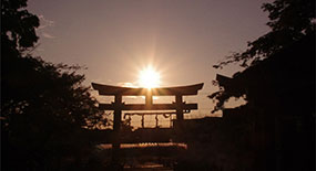 陰陽道被靈活運用,社殿朝向西南方(背鬼門)以封鎖災難的通路。另外,每年11月中旬到2月中旬之間,太陽會在鳥居的正下方落下,因此來自全國的人們會前來觀賞鳥居與太陽重合的瞬間。賀茂神社由奈良時代應聖武天皇之命,由陰陽道之祖吉備真備親自選定並創建,至今仍由吉備真備的後裔岡田家守護著。