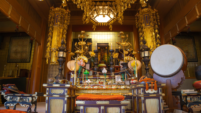 • 本堂天花板裝飾著256幅描繪四季草花的花丸畫。一片盛開的景象,讓來訪者的心靈寧靜而明朗。
