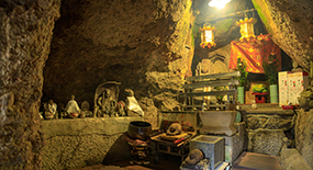 • 供奉弘法大師的岩穴上方矗立著承受住原子彈爆風的“奇岩”。因其奇跡般的經緯,也被介紹為“和平祈岩”。