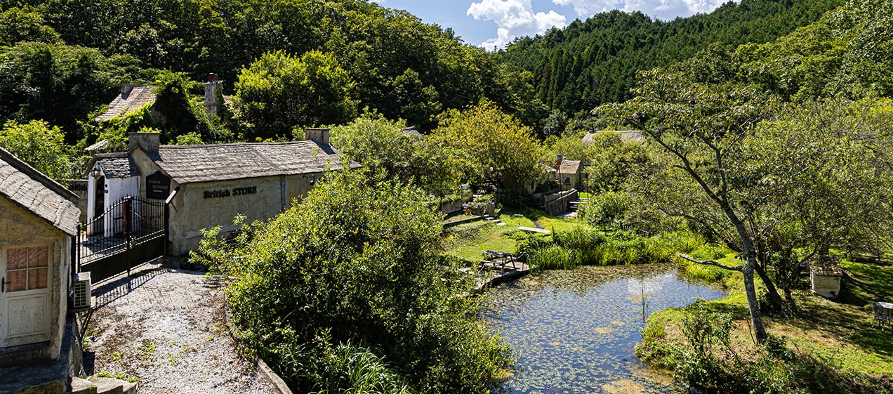 維多利亞時代田園地帶風格的蜜色石灰石建造的別墅與教堂、綠意盎然的英式花園等,再現約150年前古典美好的英國科茲窩爾茲街景散策。在日本就能盡情享受英國文化的氛圍。