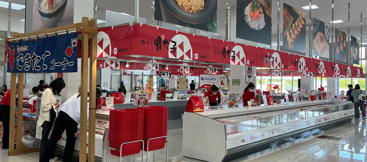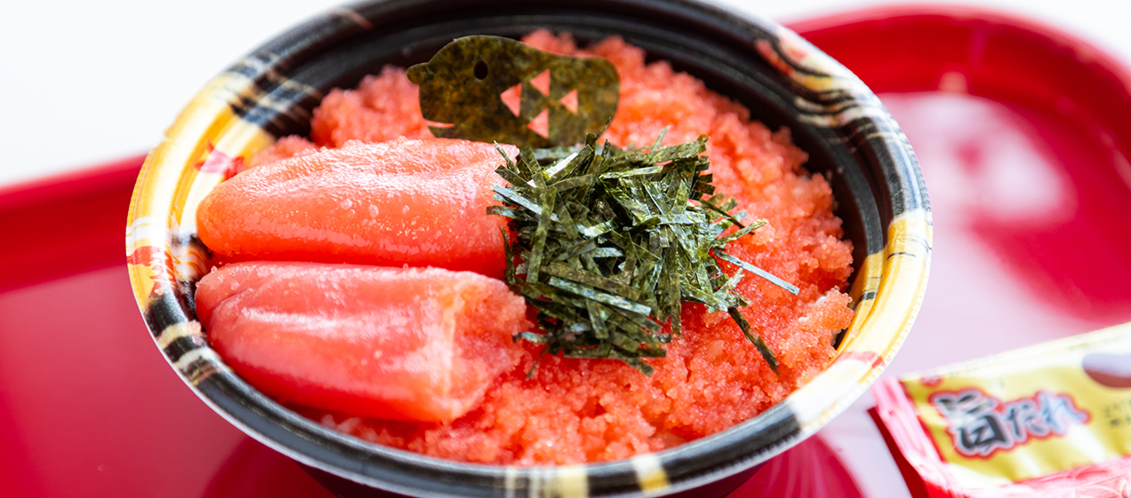 參觀工廠(免費)之後,可以在「美食區」品嚐使用現做明太子的原創餐點,或是在直營店購買明太子相關商品。