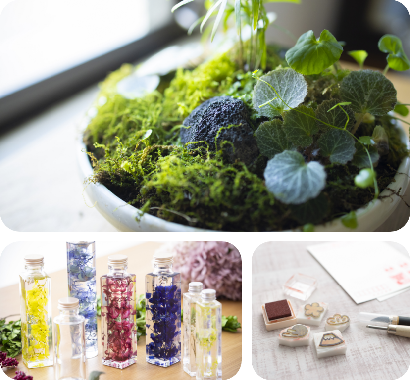 除了前面介紹的活動之外,日本各地還有許多獨具特色的手作體驗等你來探索。無論是製作模型公仔、香氛蠟燭、燈罩等居家小物,打造炭器盆栽「炭盆」,或者在透明玻璃容器中培育植物的「玻璃生態瓶」,甚至是親手刻製印章、橡皮章,都有適合初學者參加的豐富體驗。在旅途中安排一場充滿成就感與滿足感的手作體驗,也許能為這趟旅程增添別樣的回憶!