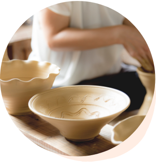 可以親手製作餐盤、馬克杯等日常用品,因此陶藝與彩繪體驗非常受歡迎。使用手拉坏或徒手揉土塑形,雖然力道掌握等方面略有難度,但正因如此,也別有一番趣味。如果是為完成的器皿進行彩繪的體驗,小朋友也可以一起開心參與。