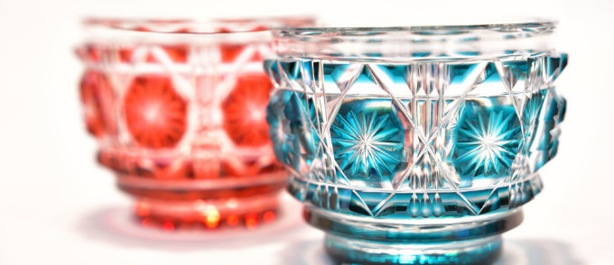 源自江戶時代末期的東京傳統玻璃工藝「江戶切子」。透過精緻切割,在玻璃表面雕出細膩紋樣,當光線灑落時,折射出的閃耀光芒格外迷人。