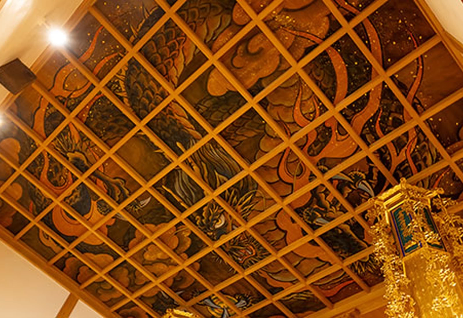 仰望那幅描繪著龍的絢麗天花板畫吧