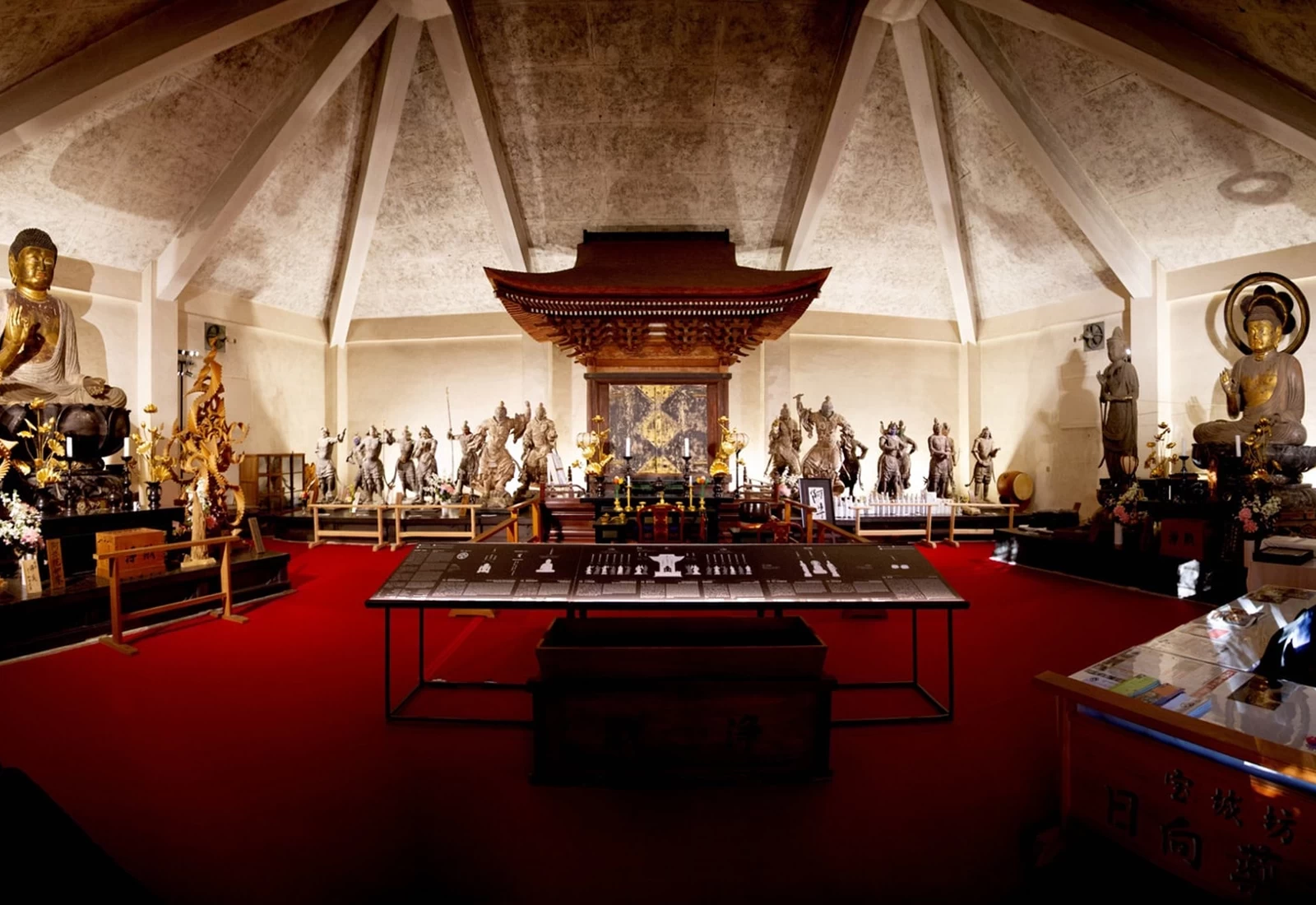 「日向藥師 寶城坊」擁有逾1300年的悠久歷史,相傳源賴朝與其妻北條政子都曾多次前來祈願參拜。寺院境內可見茅草屋頂的本堂,以及多座佛像與雕刻藝術作品,充滿古樸氣息。