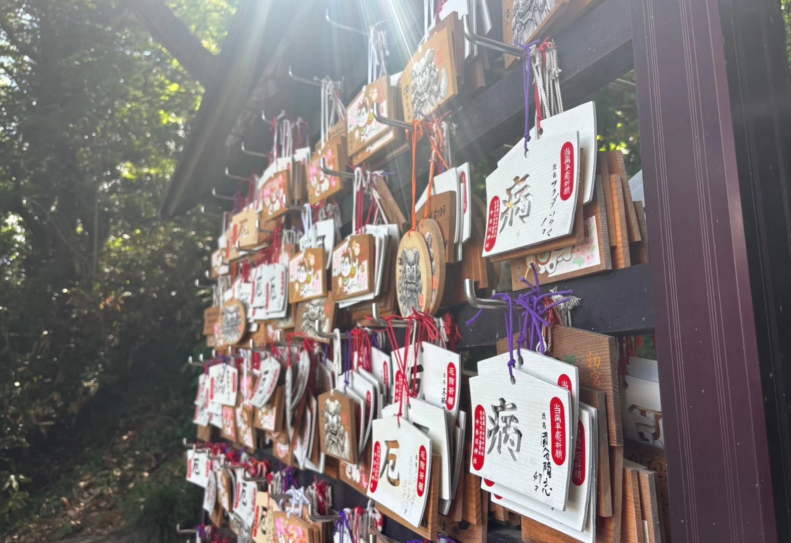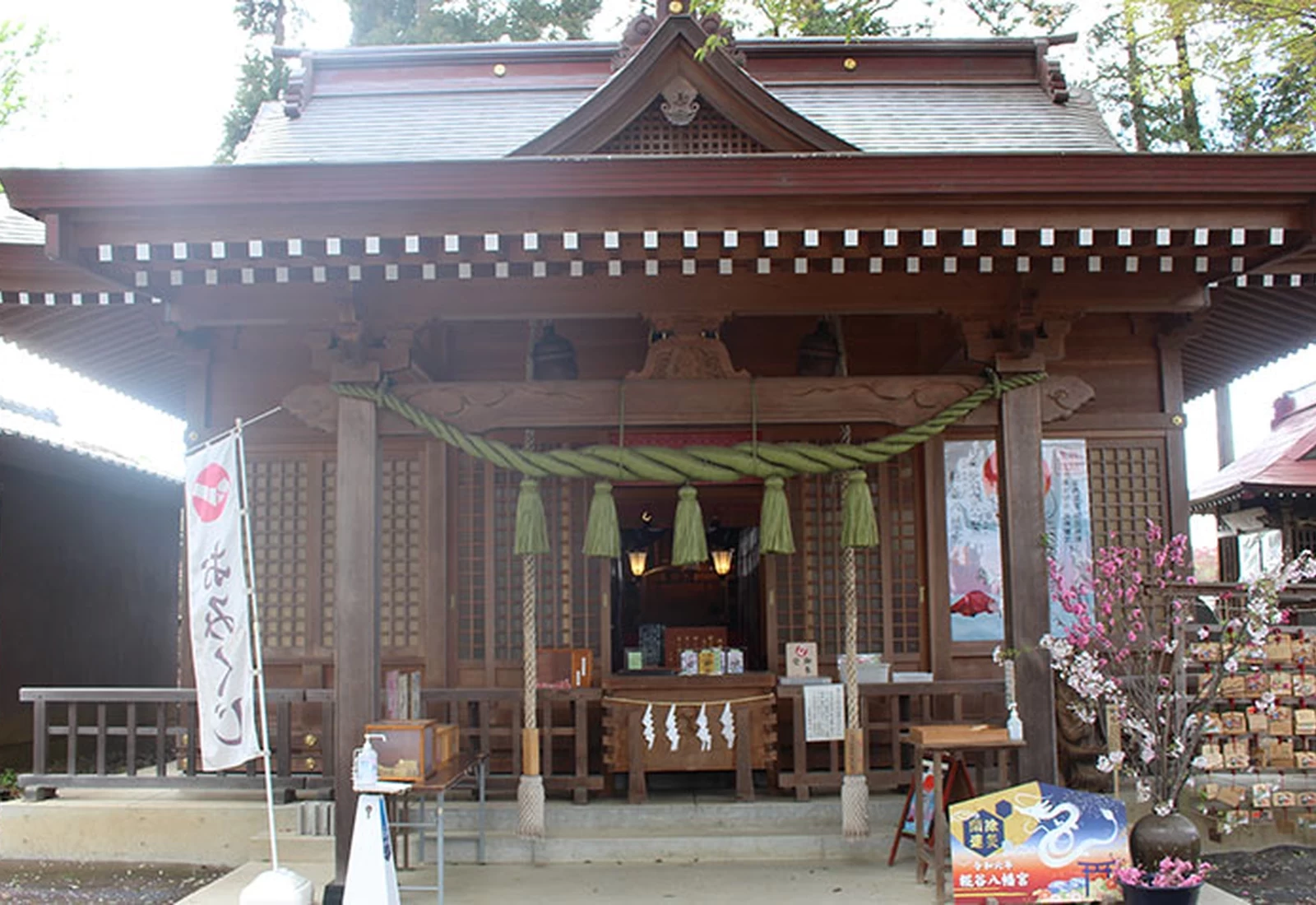 御朱印的種類相當豐富,依月份或祭典更換款式,以岩繪顏料描繪出富含季節氣息的圖樣,深受參拜者喜愛。停車場一隅還能看見以杉樹枝製作而成的龍貓造型裝置,置身在綠意盎然的環境中,隨手一拍就是療癒又吸睛的打卡照。