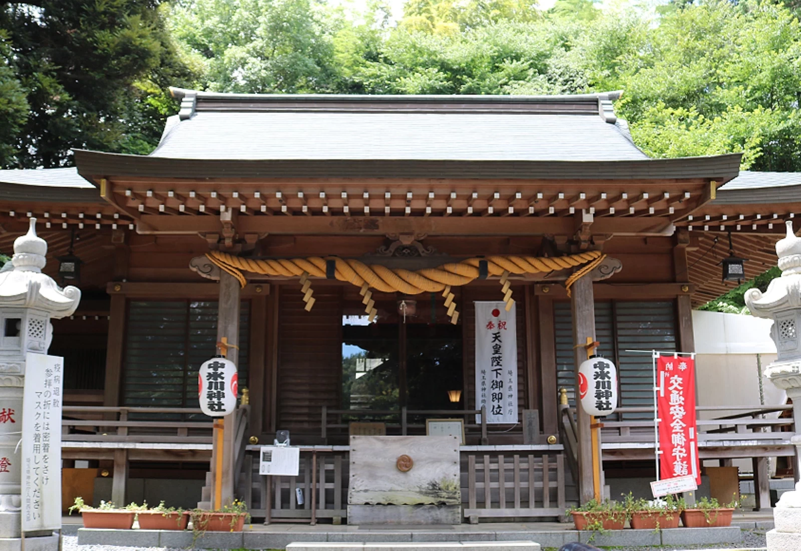 「中冰川神社」相傳創建於崇神天皇時代,是一座歷史悠久的古社。「中冰川神社」之名,源自其座落於埼玉市的武藏一宮冰川神社與東京都奧多摩町冰川神社之間的地理位置。由於三社在東西方向呈一直線排列,也吸引不少人前來體驗別具意義的「冰川三社巡禮」。