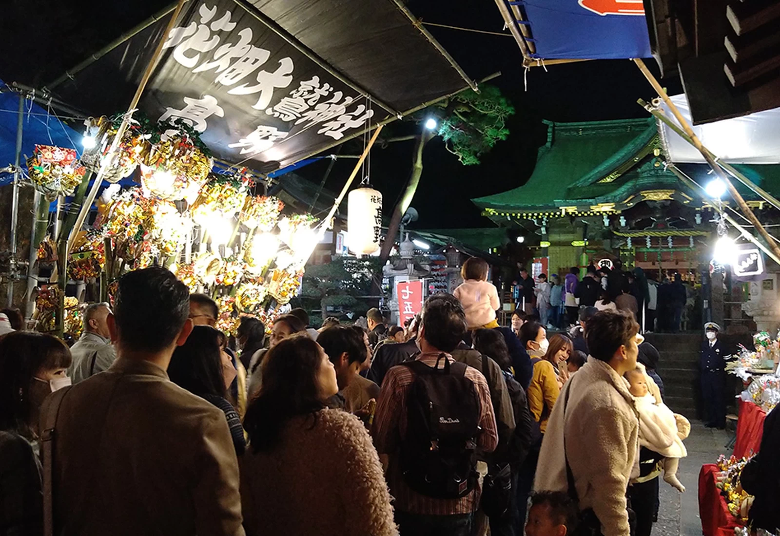 大鷲神社被視為「酉之市」的發祥地,如今這項祭典已從東京傳遍全國各地。其由來可追溯至主祭神日本武尊的忌日——11月的酉日。據傳「酉之市」上販售的招福熊手,是因「把好運撈進來」的象徵而成為吉祥物。