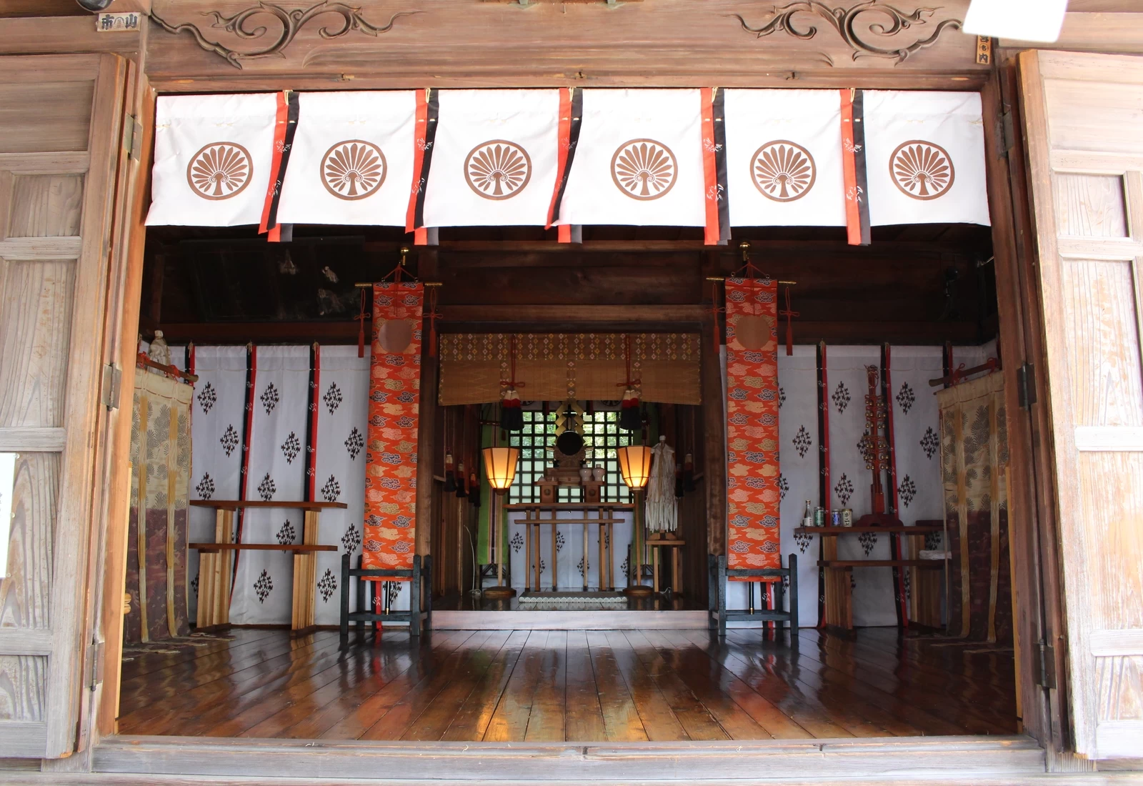 雖曾在戰火中失去部分社殿,但在當地居民的齊心努力下,重建成如今閃耀金色光輝的美麗社殿。神社同時也保存著未受戰火波及的珍貴筆跡與歌作〈三十六歌仙繪〉,其中包括柿本人麻呂、紀貫之等多位日本古代著名歌人。